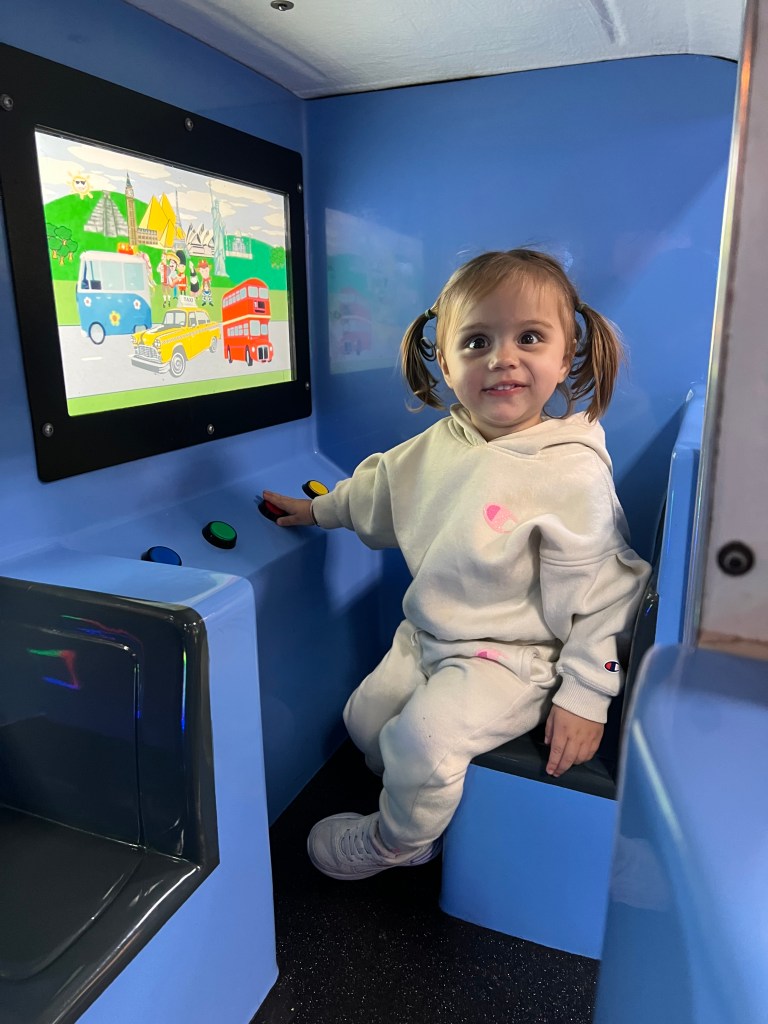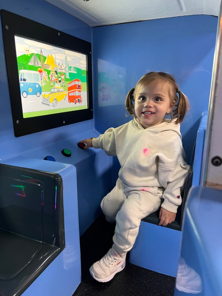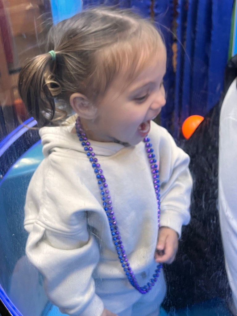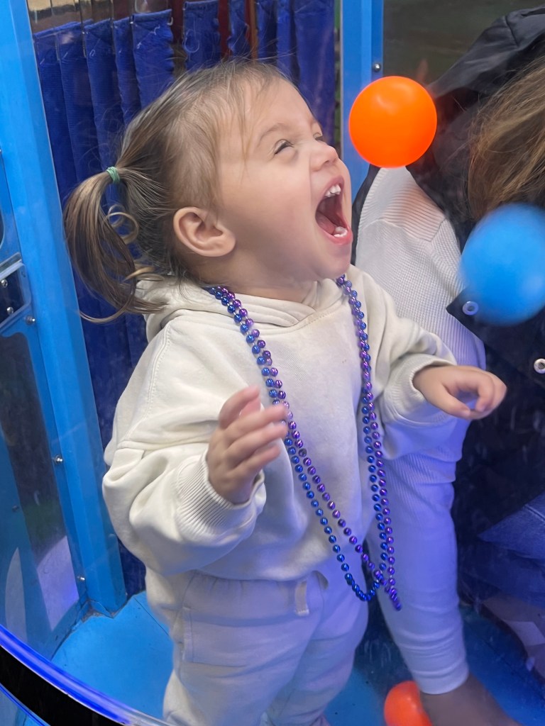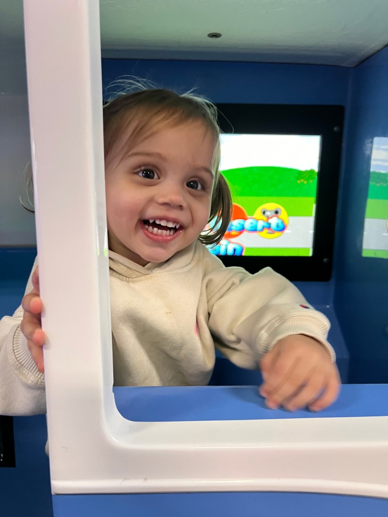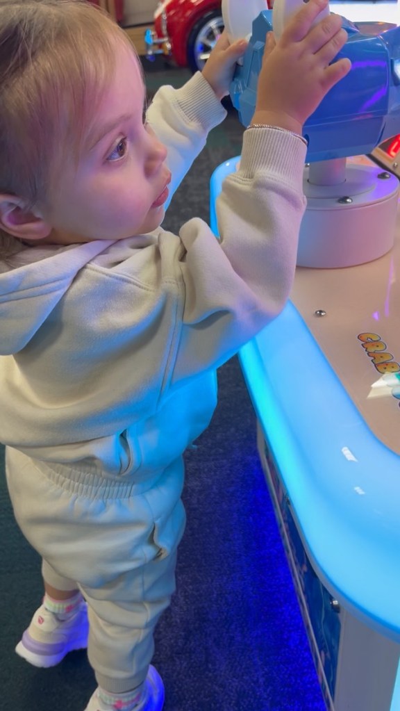 Another game you like (and I forgot what it was called) was one where colorful balls fall out from the ceiling and you have to pick them up and put them in a basket for points! It was your favorite! You must have played it 10 times. You kept saying, “again!” I had to take you out a few times even though you didn’t want to leave. But I made sure we came back a few more times before we left. Look at your big pretty smile. You look so excited and happy.