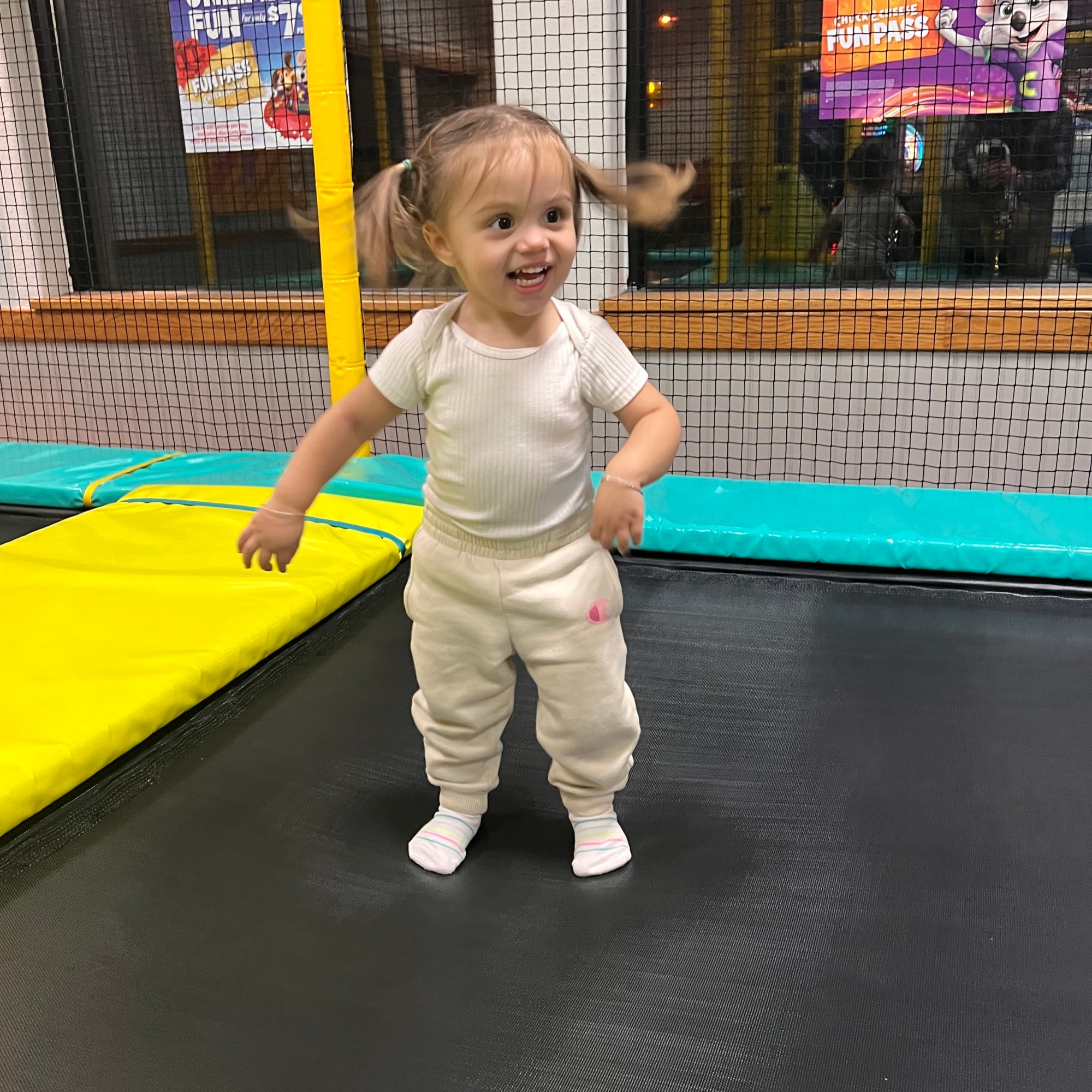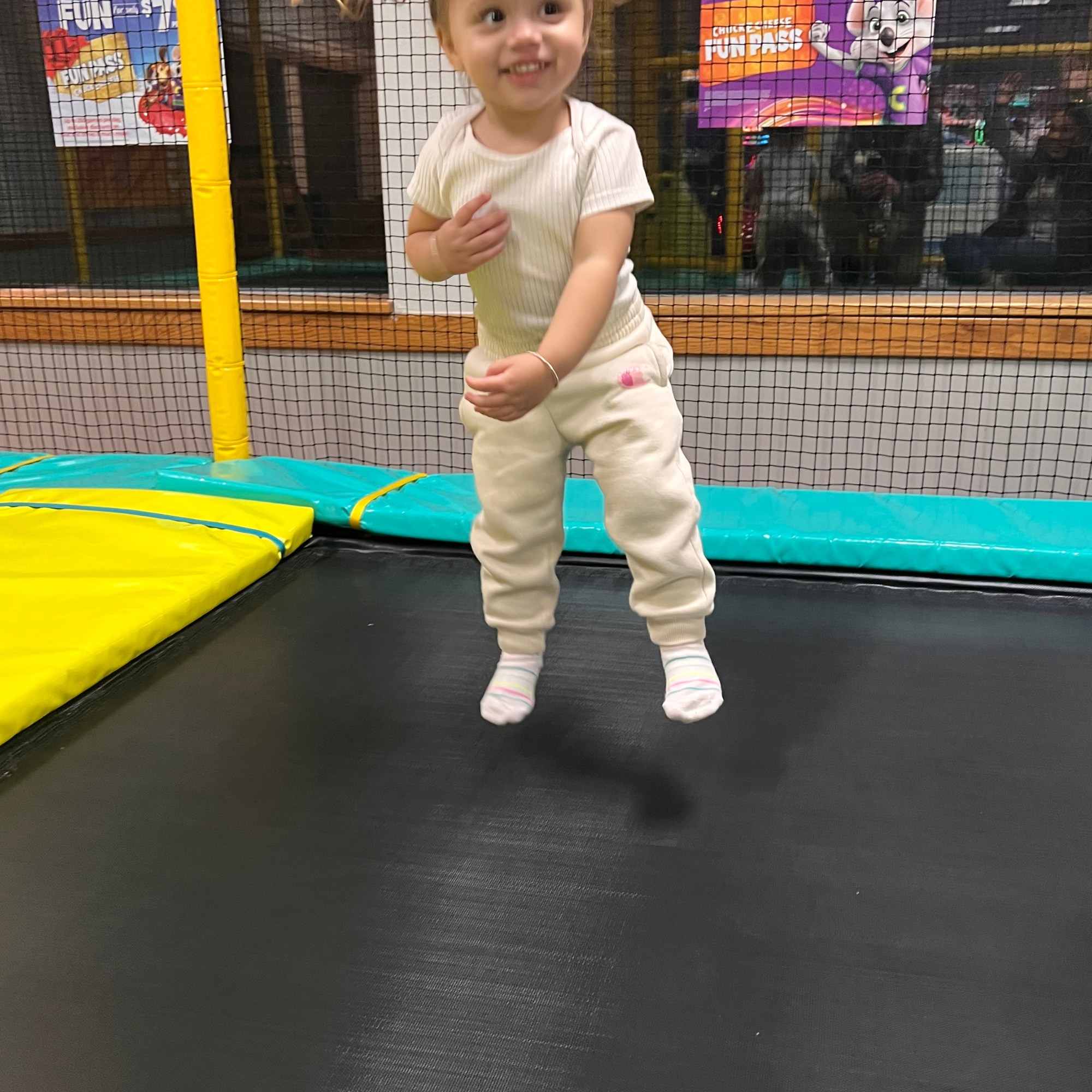 You played a lot of games and it was a lot of fun! But the most you laughed was probably the trampolines. You made friends with a girl named Ellie and you both played. You laughed so hard and jumped so much! Even when you fell, you did not cry (even though you rubbed your face a little when you got up, so I know it hurt a little bit).