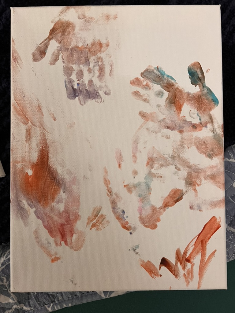 That night, we also did some paintings. I really love both of these. I love the one with the hands because I love seeing you grow. I feel like you are bigger every time I see you. I wish I could slow down time, but I don’t think about that and I just try to make as many memories and special moments as I can.